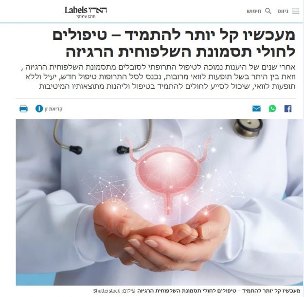 אחרי שנים של היענות נמוכה לטיפול התרופתי לסובלים מתסמונת השלפוחית הרגיזה , וזאת בין היתר בשל תופעות לוואי מרובות, נכנס לסל התרופות טיפול חדש, יעיל וללא תופעות לוואי, שיכול לסייע לחולים להתמיד בטיפול וליהנות מתוצאותיו המיטיבות.